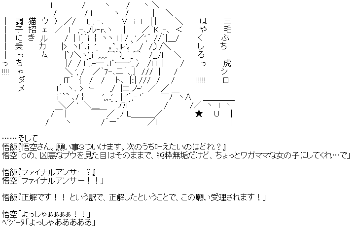 シェンロン「わかった。強さを変えることは出来んが、性格と見た目の変更ならお安い御用だ」