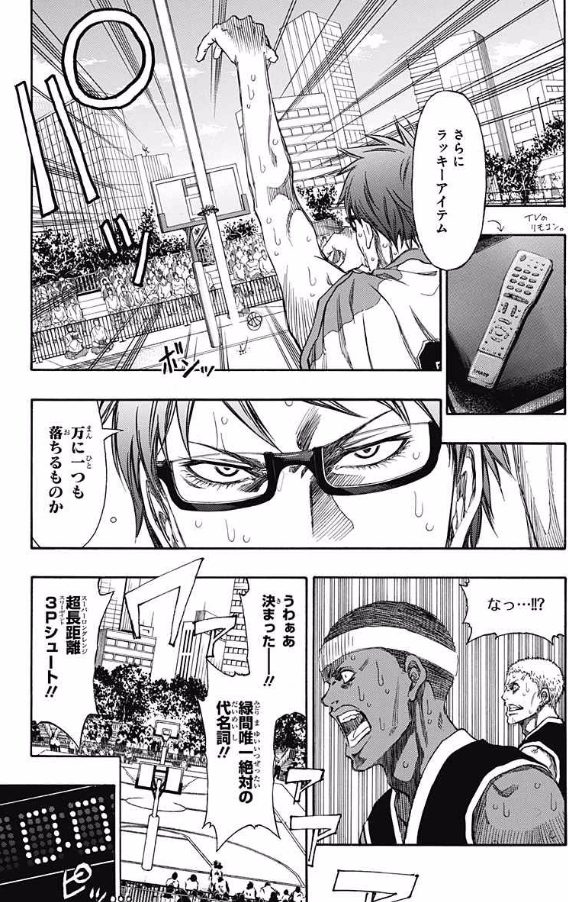 コートの端からシュート決めて「戻りが遅いのだよ」とか言ってたの理不尽すぎて笑った