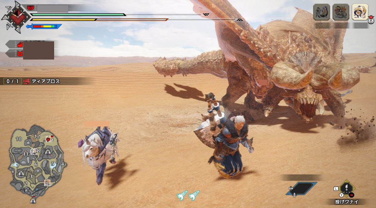 池谷「ディアブロスはおそらく、現実にいたら一番狩るのが難しいモンスターだと思います。狩るのがかなり難しいので、これは(取材の前に)いろいろと考えてみたんですよ。この場合、キリンの狩り方を応用するのがいいと思います」