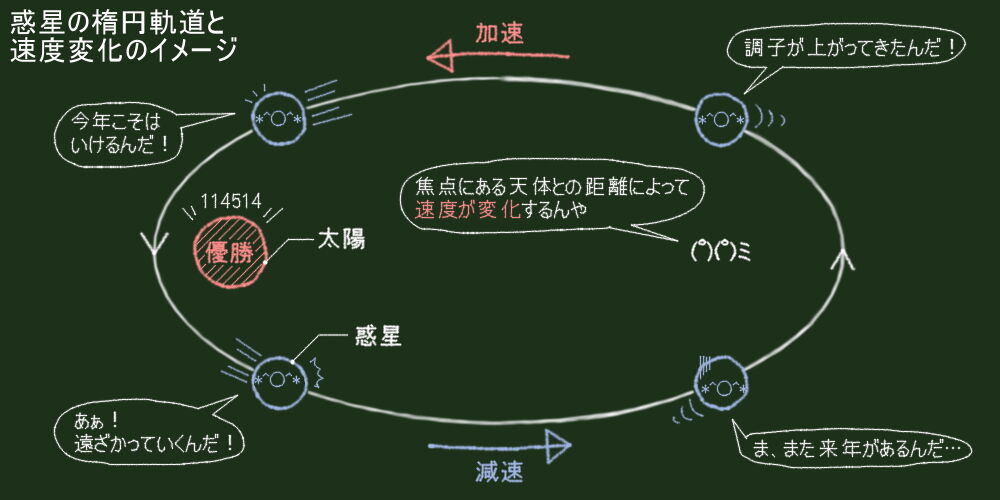 彡(゚)(゚)「見てわかる通りやけど、3つの法則は全て”惑星の軌道が楕円であると仮定したもの”や」